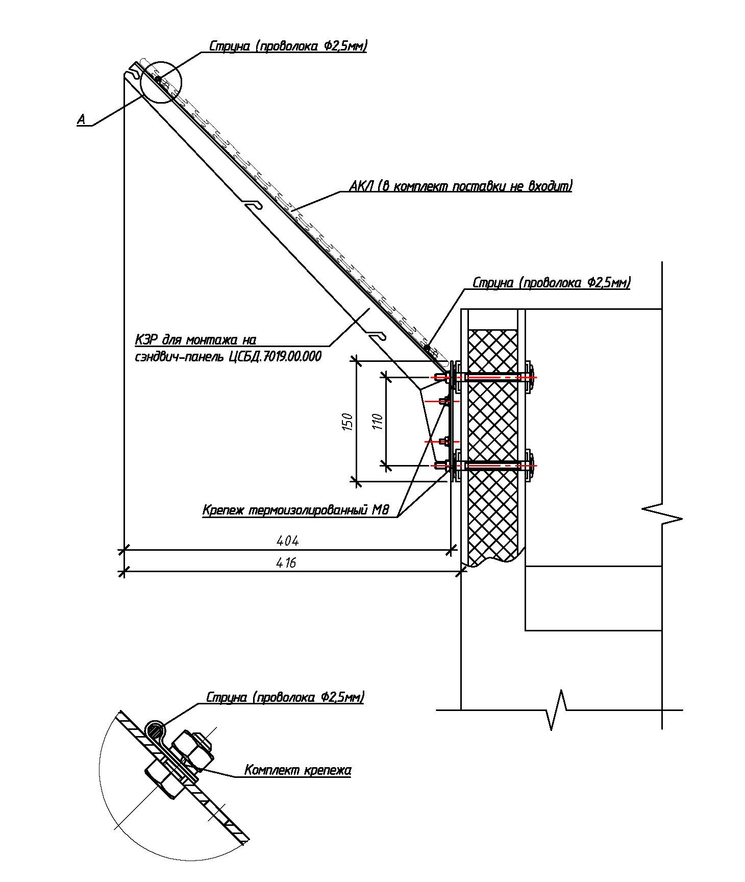 Данный тип крепежа позволяет производить установку КЗР без опасности повреждения утеплителя и металлического слоя сэндвич-панели, а также предотвращает образование «мостика холода» и имеет эстетичный внешний вид.