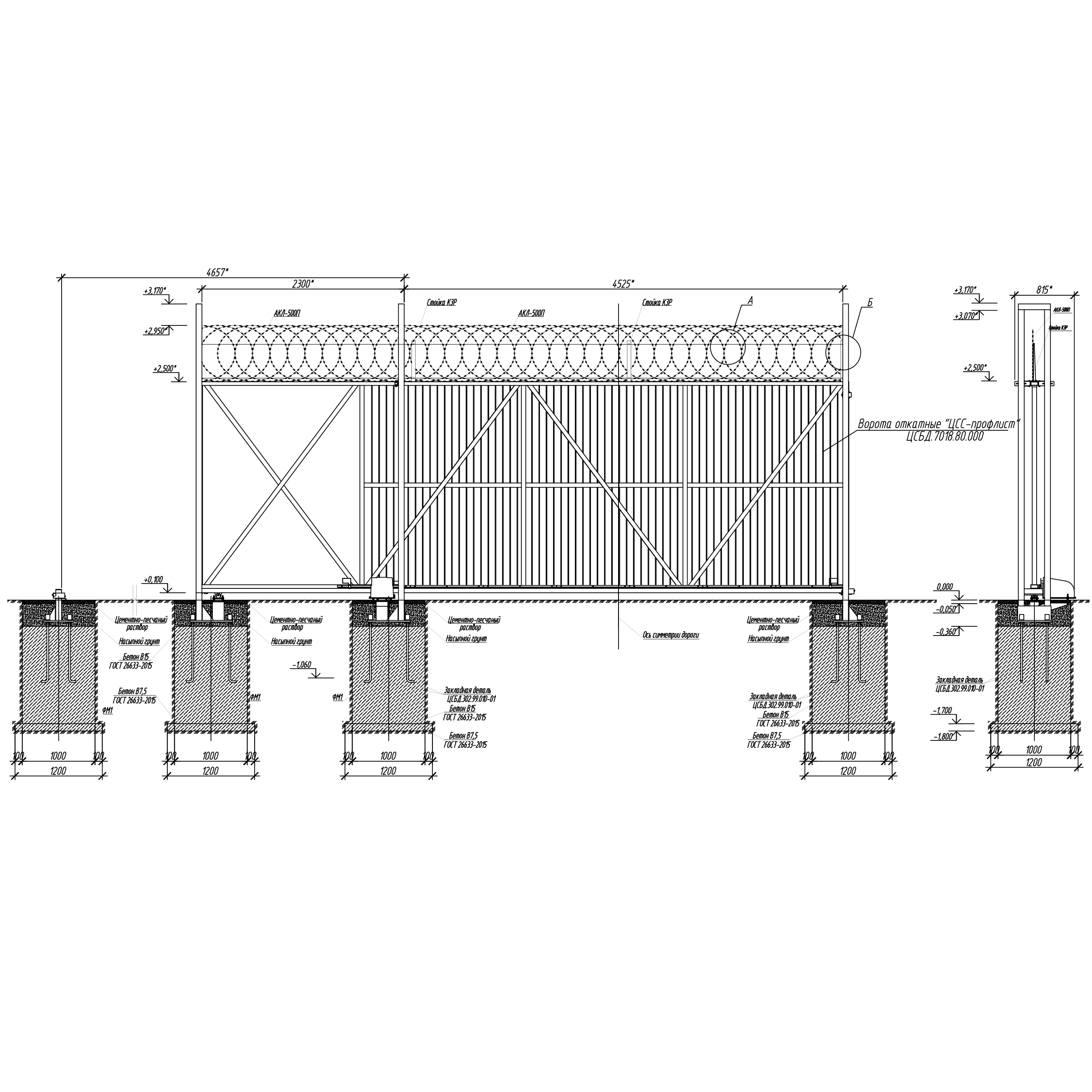 Ворота откатные «ЦСС ПРОФЛИСТ» ЦСБД.7018.40.000 предназначены для использования в составе комплексов технических средств охраны периметров устанавливаемых в системах ограждений на открытых площадках, а также в стеновых проемах сооружений различного назначения и служащие для регулирования проезда транспорта, пропуска групп людей, а также в качестве физического препятствия их движению.