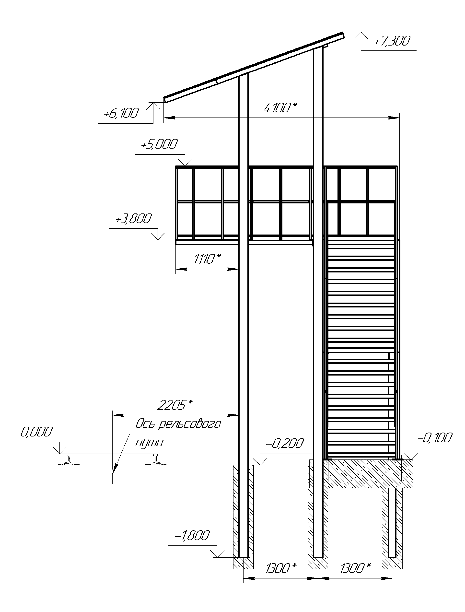 - Расстояние от досмотровой площадки до оси рельсового пути: 2205 мм.