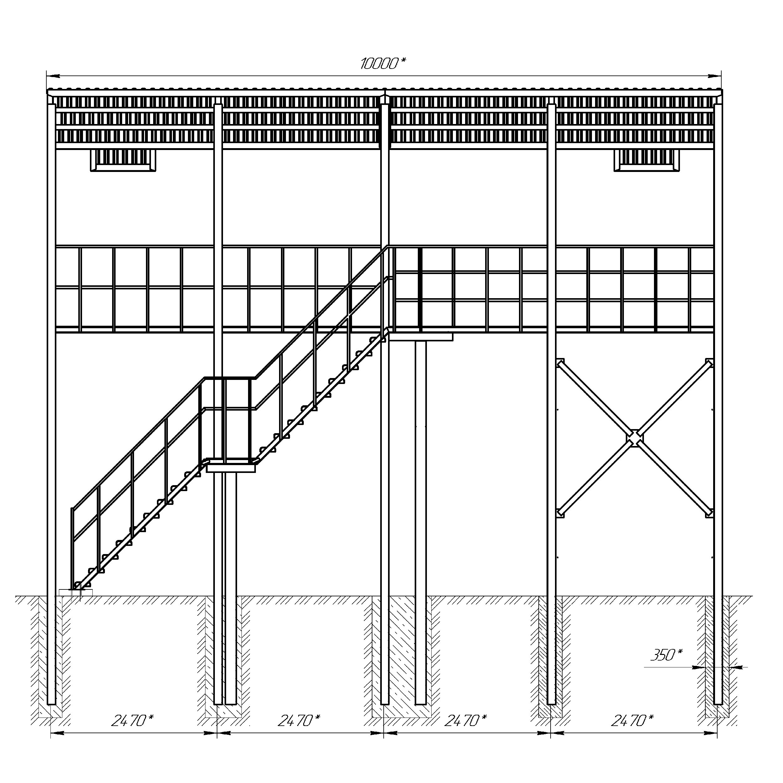- Общая длина конструкции (по основанию): 10000 мм.
